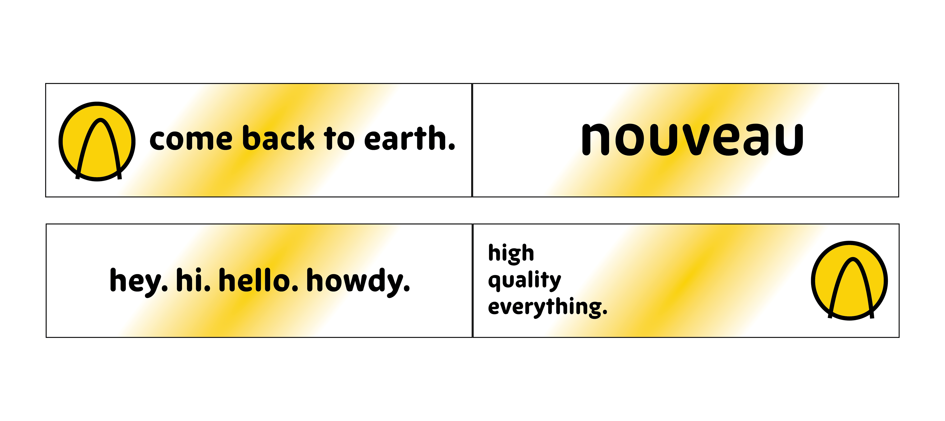 Below: two banner designs intended for use in buses, subways, or trains. They would take up two spots next to each other. The airy, minimal design works in tandem with the playful copy to spark curiosity and engagement with the brand.